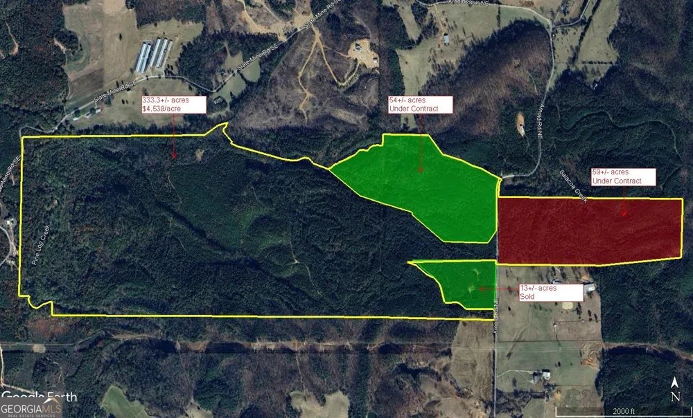 Heavily wooded rolling timberland with good views and easy access from Metro Atlanta. Extensive Pine Log Creek frontage.