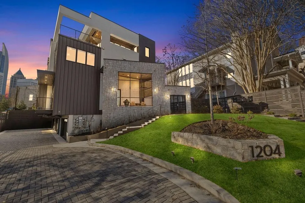 Custom-Designed Luxury Townhome Directly Across from Piedmont Park! In the heart of Midtown Atlanta, this new construction striking contemporary townhome delivers midtown views and a lifestyle few addresses can match. Clean architectural lines, intentional material contrast, wide-plank hardwoods, oversized windows, and designer lighting create a bold yet refined aesthetic throughout. A private elevator services every level—from the garage to the rooftop—while smart upgrades include Cat 6 wiring, integrated in-ceiling speakers, prewired shades, and a tankless water heater. The open-concept main level is designed to impress. A dramatic gas fireplace with full-height Roman clay finish anchors the living space, complemented by a glass-enclosed wine display and sleek wet bar. Expansive sliding glass doors open to a covered terrace, effortlessly blending indoor and outdoor living. At the center of the home, the chef’s kitchen makes a statement with an oversized waterfall-edge stone island featuring integrated wireless charging and pop-up outlets. Custom flat-panel cabinetry, panel-ready refrigeration, concealed pantry storage, professional-grade gas range with statement hood, designer tile backsplash, and premium stone surfaces elevate both form and function. The primary suite is a true retreat, offering expansive windows and a spa-inspired bath with floating double vanity, backlit mirrors, and an oversized glass-enclosed shower. Secondary bedrooms feature beautifully appointed ensuite baths. The top level provides flexible living space with private entry and built-in bar—opening to a rooftop terrace with sweeping Midtown skyline views that truly steal the show. Just steps from the Atlanta Beltline and moments from Colony Square, this is elevated, design-forward living in one of Atlanta’s most iconic park-front settings.