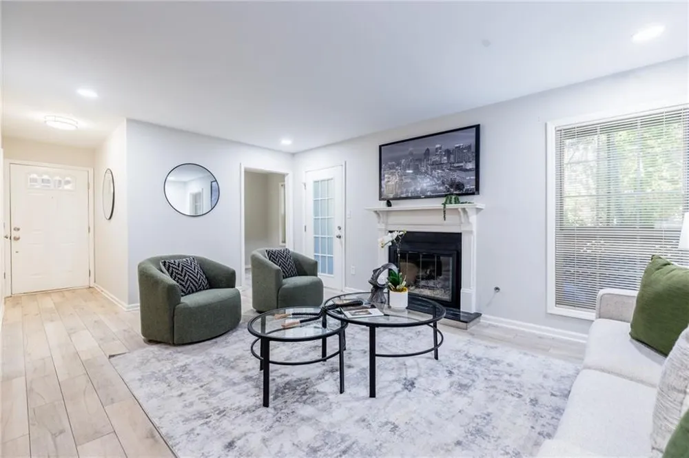 Welcome to your updated and spacious end-unit home in a great location! This 2-bedroom, 2-bathroom condo with a bonus office space has everything you need to live, work, and relax in style. Start by kicking back on the private, covered front porch, and then step inside to discover a beautifully renovated space that’s perfect for everyday living and entertaining. The open layout features a cozy fireplace, a bar for hosting friends, and a super versatile flex space off the living room—ideal for a home office, yoga spot, or playroom. The kitchen is a total win with gorgeous countertops, stainless-steel appliances, a big pantry, and plenty of cabinet storage. When it’s time to unwind, head to the primary bedroom, complete with a walk-in closet and a private en-suite bathroom featuring dual sinks, a linen closet, and a sleek glass-enclosed tile shower. One of the best features is the screened-in porch! It’s the perfect spot to relax and enjoy the view of the private wooded lot. There’s also weatherproof storage off the screened-in porch as well. This location couldn’t be better, with easy access to 285, 85, and 141, making it super convenient to get anywhere in the city. Plus, the community has great perks like a swimming pool and a community area for grilling and entertaining with neighbors and friends. You’re also just a short walk to Brook Run Park and Chesnut Elementary School. The seller recently added recessed lighting in the Living Room and fans in both bedrooms for better lighting throughout the condo. This home checks all the boxes—come see it for yourself!