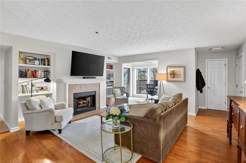 Welcome to this beautifully maintained 2-bedroom, 2-bath condo in the gated community, perfectly situated just minutes from the best of Vinings, Smyrna, Midtown, Buckhead, and more. Comfortable living space, this move-in ready home offers the ideal blend of convenience, privacy, and charm. Inside, you’ll love the functional split-bedroom floor plan—perfect for roommates, guests, or a private home office setup. The bright and airy main living area features hardwood floors, a cozy fireplace, and an open flow between the living room, dining space, and kitchen. Natural light pours in, and the added sunroom makes a perfect office, reading nook, or bonus sitting area. Step out onto your private balcony and enjoy peaceful views with no neighbors directly behind you. The spacious primary suite offers generous closet space and a private bath, while the secondary bedroom also features ample storage and its own full bath. A new washer and dryer add convenience, and the community recently completed major exterior updates, including new siding and fresh exterior paint in 2025, enhancing both value and curb appeal. Short drive to The Battery Atlanta & Truist Park. Historic Vinings Village. Cumberland Mall & surrounding retail. Easy access to I-285 and I-75 for seamless commuting. Nearby parks, trails, and green space including access to the Silver Comet Trail.
