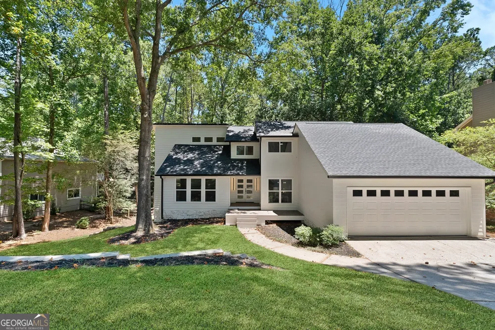 This chic and impeccable, better-than-new, modern masterpiece provides the perfect combination of mesmerizing design and abundant curated spaces to create a dramatic, yet inviting home. The gourmet kitchen is a chef's dream, showcasing custom cabinets, a sleek quartz waterfall island, designer backsplash, and top-tier fixtures. The floating stairs and one-of-a-kind floor plan set the tone for the entire home! You'll have your pick between two stunning primary suites-yes, TWO!-each offering its own slice of luxury. The house flows effortlessly with multiple living, flex, and entertaining spaces, all decked out in stylish, contemporary finishes that make it feel both cool and cozy. The brand-new decks are perfect for your next get-together, overlooking a huge, private half-acre yard that offers total serenity and plenty of room for a POOL. Highlights? How about 7" white oak hardwoods, not one but two laundry rooms, soaring 20-foot ceilings in the fireside family room, and 15-foot ceilings in the primary suite! There's even an EV charger, pristine Polyaspartic garage floors, your very own golf cart parking pad, and a finished terrace level that's so amazing, your in-laws will never want to leave. This home is a total top-to-bottom renovation-new roof, two new HVAC units, new water heater, new exterior siding, new windows, new doors, upgraded electrical and plumbing, and much more. Every inch has been lovingly upgraded, making it as close to perfect as you can get. The neighborhood offers year-round resort-style amenities like golf, pools, fitness center, full dining service, a vibrant social calendar, tennis, pickleball, and more. Come see for yourself! But in the meantime, catch a sneak peek on YouTube: "The Coolest House in Roswell by Winter Baserva."