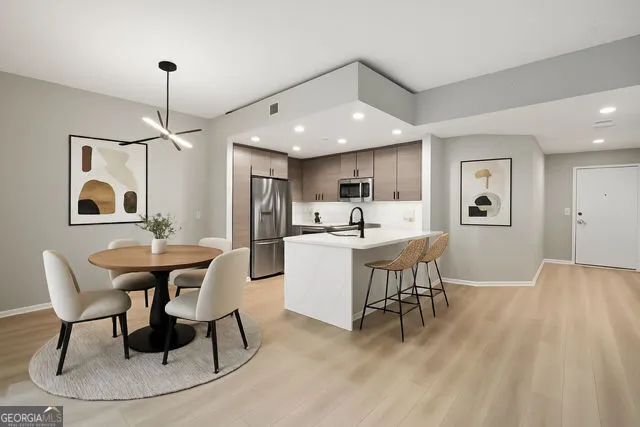 Welcome home to #711 at Horizon - where luxury, style, and convenience meet. This stunning 2-bedroom, 2-bath condo has been fully reimagined from top to bottom, making it one of the finest choices offered in this sought-after high-rise community. Step inside and be greeted by a bright, open floor plan framed by floor-to-ceiling windows. The designer kitchen is a showstopper, featuring Calcutta quartz waterfall countertops, custom high-end cabinetry, and new stainless steel appliances. Light birchwood LVP floors flow seamlessly throughout, offering both durability and modern elegance. Both bathrooms have been completely renovated with Italian tile, floating vanities, and backlit mirrors, while the primary suite boasts a striking custom accent wall with ambient lighting. Thoughtful upgrades such as motorized blackout shades elevate both style and comfort. For unmatched convenience, this home includes two deeded parking spaces located right next to the elevator-a true luxury in condo living. Horizon offers more than just a home-it provides a lifestyle of ease and sophistication. Spend your afternoons relaxing by the newly renovated saltwater pool and spa, stay active with access to two dog parks and a fully equipped fitness center, or host friends in one of the stylish club rooms or outdoor grilling areas. Everyday conveniences include a 24-hour concierge, business center, executive meeting room, and EV charging stations, ensuring that all aspects of modern living are within reach. Perfectly positioned, Horizon delivers the best of both worlds with an Atlanta address paired with low Cobb County taxes. Just across the street, explore the National Forest's hiking and biking trails, or take a short stroll-less than a mile-to Truist Park and The Battery for world-class dining, shopping, and entertainment. This is luxury high-rise living at its absolute best-don't miss the opportunity to make Unit #711 your new home.